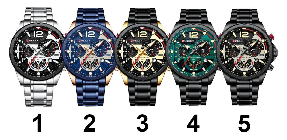 | Funkcje zegarka: | datownik, chronograf, stoper, wodoszczelność 30m |