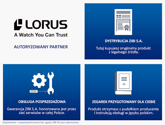 Wszystkie nasze zegarki LORUS pochodzą z oficjalnej polskiej dystrybucji.