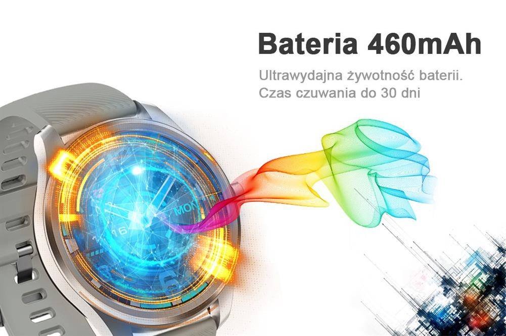 - Bateria: 460mAh. Czas pracy do 30 dni w trybie czuwania, 20 dni normalny czas pracy.