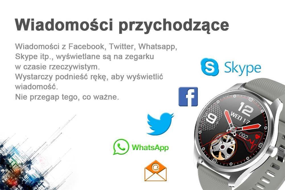 - Powiadomienia Facebook, SMS, WhatsApp, Skype, Twitter i inne