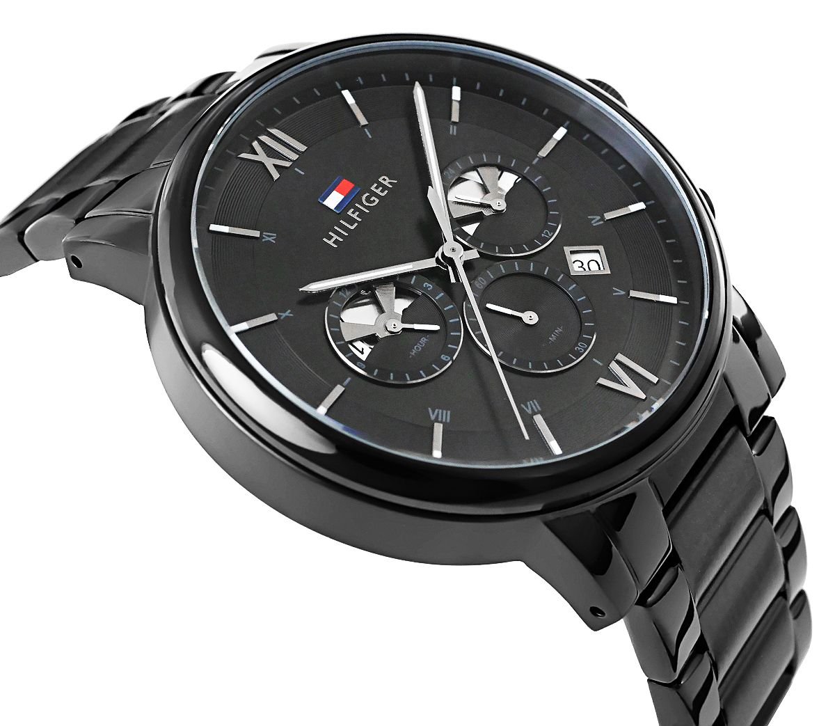 Zegarek Męski Tommy Hilfiger Evan 1710410 wyposażony chronografy czasu dobowego 12/24h- wyświetlanie godziny z uwzględnieniem całej doby umożliwia rozróżnienie godzin przed i popołudniowych, stoper do 12h- wyświetlanie godziny z uwzględnieniem całej doby umożliwia rozróżnienie godzin przed i popołudniowych oraz datownikiem dni miesiąca.