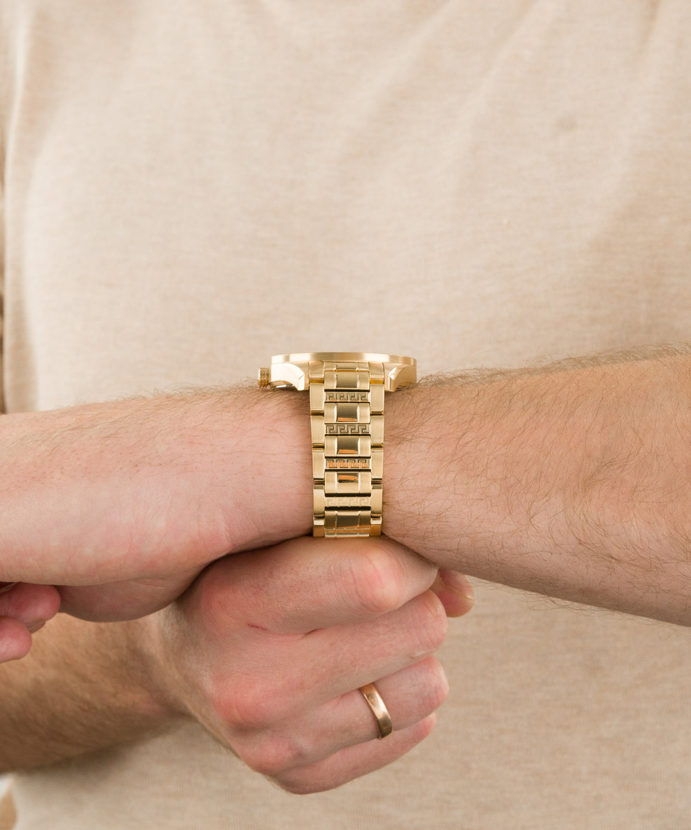 Męski zegarek Versace V-Vertical VE3H00622 wyróżnia się nowoczesnym szykiem połączonym z nieszablonowymi modowymi akcentami. Złota kolorystyka obudowy oraz szara tarcza z pewnością zwrócą uwagę. Do produkcji zegarka wykorzystano stal szlachetną. W środku obudowy znajduje się mechanizm kwarcowy.