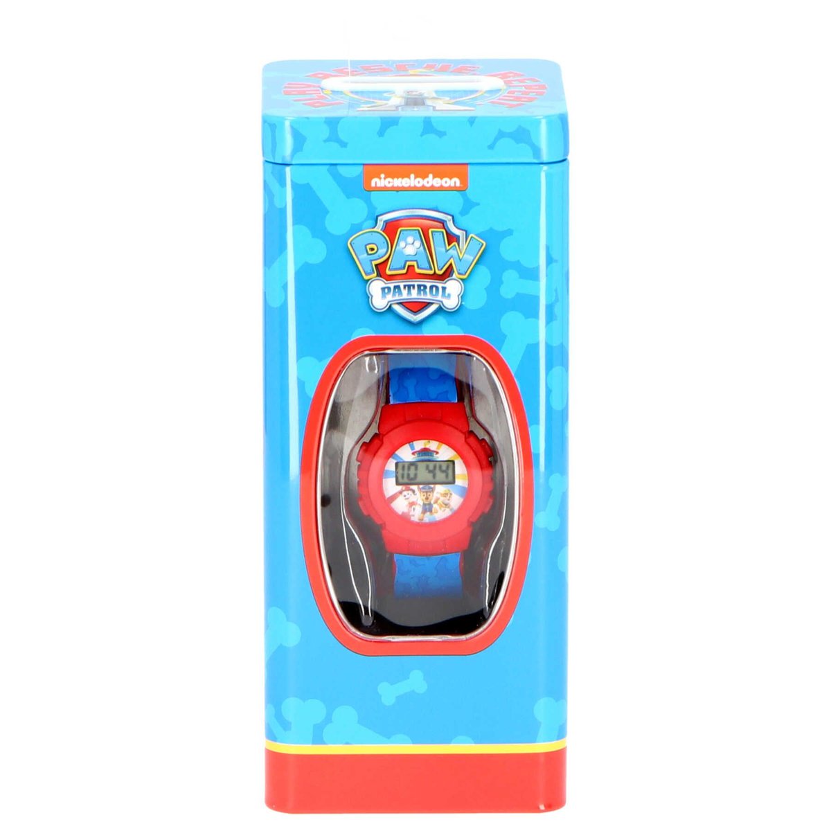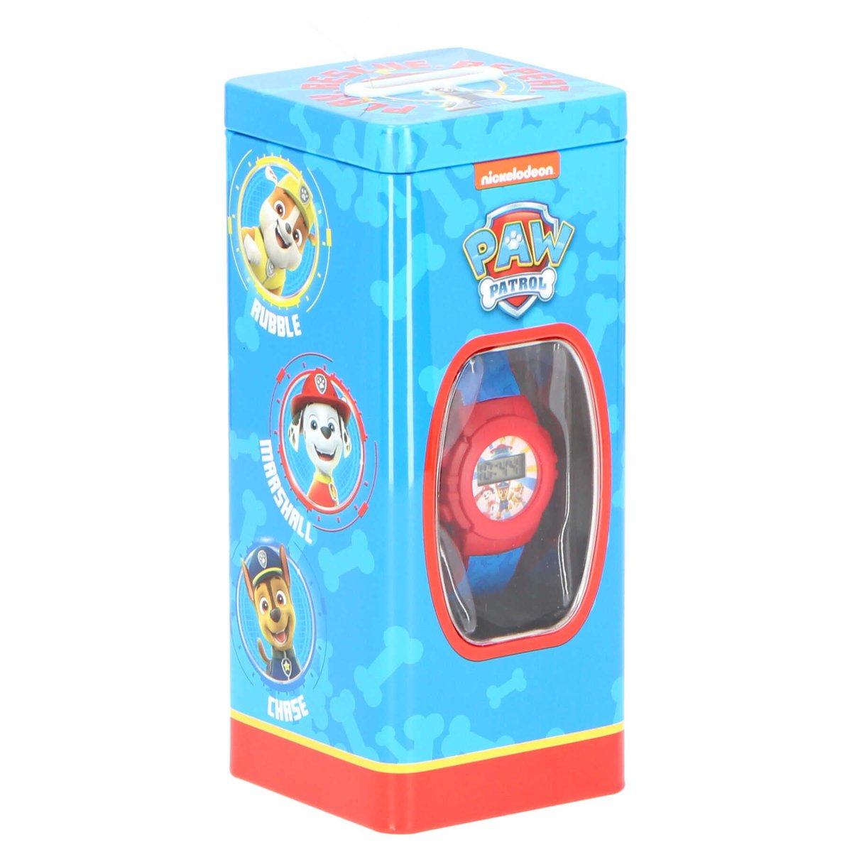 Elektroniczny zegarek Psi Patrol w metalowej puszce to świetny dodatek dla młodych fanów popularnego serialu animowanego Psi Patrol