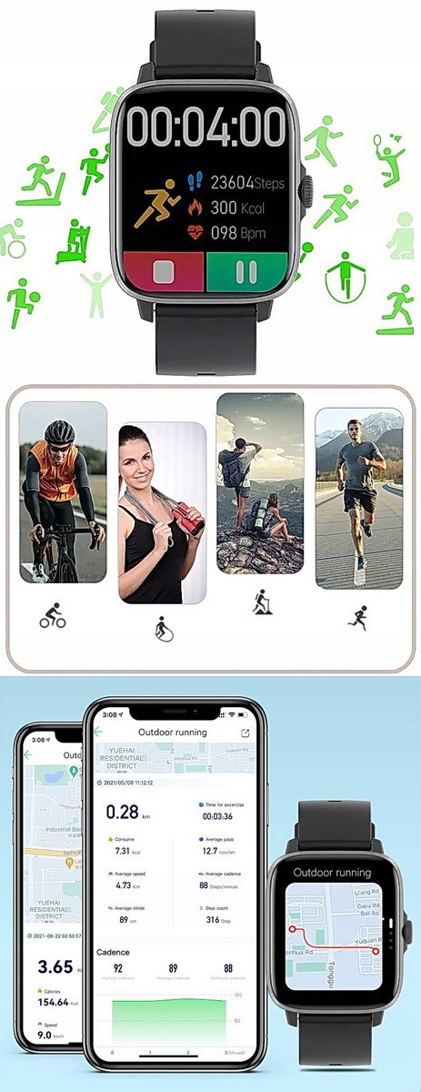 Smart Watch bada twoją aktywność fizyczną oraz mierzy postępy treningowe m.in: