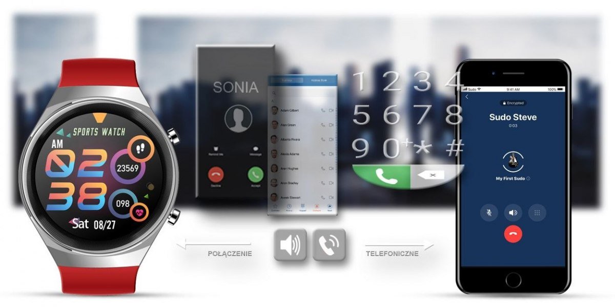 Po sparowaniu smartwatch Rubicon RNCE68 z twoim smartfonem możesz bezproblemowo odbierać połączenia telefoniczne oraz je wykonywać. Wbudowany głośnik oraz mikrofon pozwala rozmawiać bez konieczności wyciągania telefonu komórkowego. Oprócz tego zegarek posiada książkę telefoniczną oraz cyfrową klawiaturę. W ten sposób możesz wybierać numer do którego chcesz dzwonić z własnego smartwatcha. |