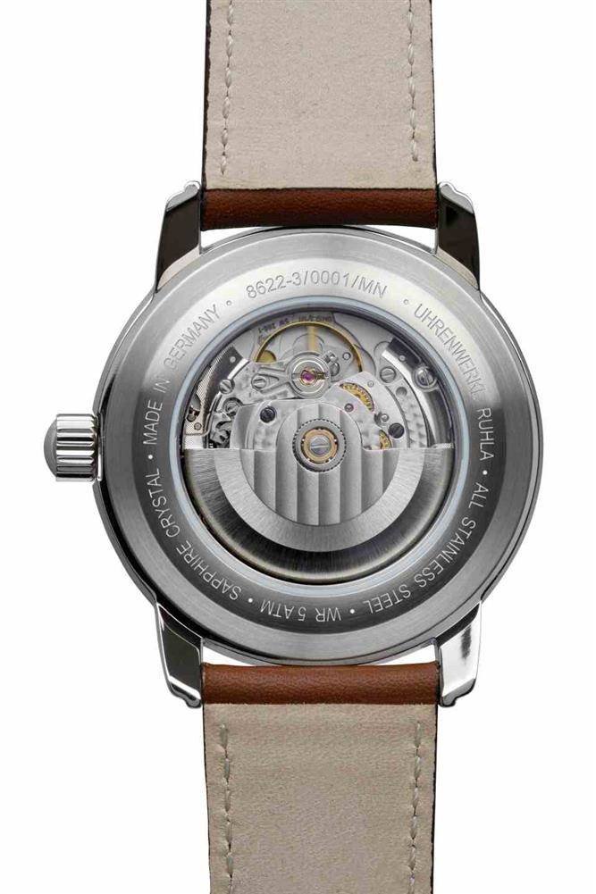Sellita SW2600, tarcza niebieska 43 mm z regulatorem, szkło szafirowe, dekiel ze szkłem mineralnym, koperta stalowa, pasek skórzany, wysokość 12 mm, waga 85 g, WR 5 ATM