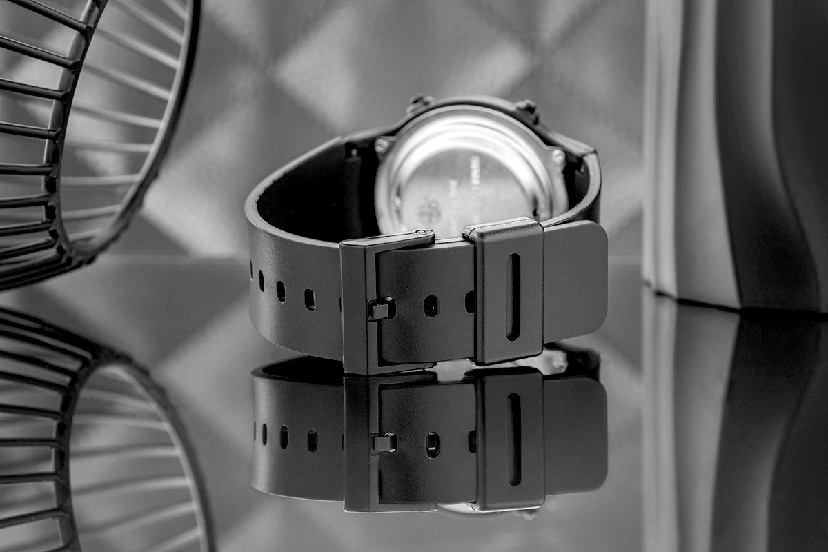 Solidna obudowa i klasyczny design sprawiają, że zegarek wygląda elegancko, ale zachowuje charakter użytkowy. Czarna, matowa koperta o opływowym kształcie dobrze układa się na nadgarstku i nie przyciąga zbędnej uwagi.