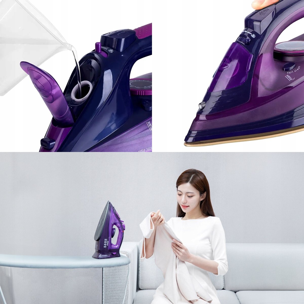 ŻELAZKO BEZPRZEWODOWE PAROWE CERAMICZNE FIOLETOWE 2400W Bezprzewodowe Elektryczne Żelazko Parowe z Ceramiczną Płytą Grzejną o mocy 2400WSkuteczne wygładzanie: Żelazko parowe używa