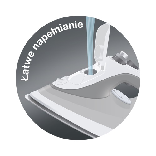 Żelazko parowe SI3054GY zostało wyposażone w duży, 270 ml pojemnik na wodę. Dla pełnej wygody prasowania, żelazko można napełniać wodą prosto z kranu, antywapienny system Self Clean zapewnia bezpieczeństwo jej wykorzystania. Praktyczny otwór i wygodne zamknięcie ułatwiają uzupełnianie poziomu wody, a dzięki tak dużej pojemności zbiornika, prasowanie jest prostsze i zajmuje mniej czasu, ponieważ nie trzeba go często napełniać.