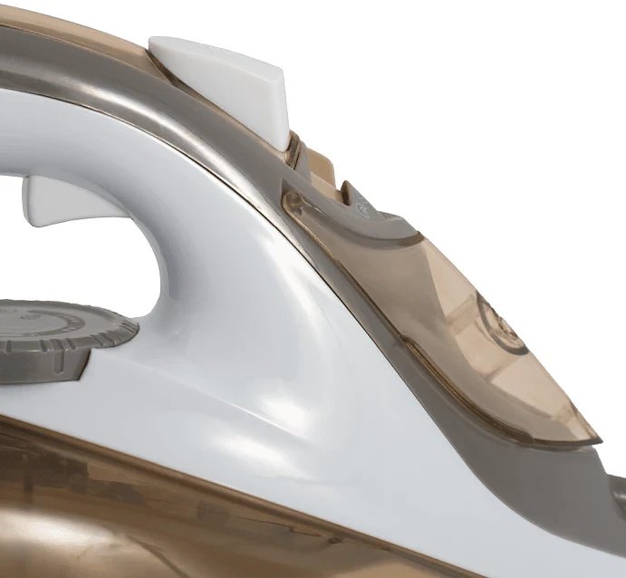 Trudne do wygładzenia elementy, takie jak mankiety czy kołnierzyki, wyprasujesz szybciej po zwilżeniu ich wodą. Wystarczy nacisnąć przycisk spryskiwacza, by precyzyjnie i równomiernie rozpylić wodę na tkaninie.