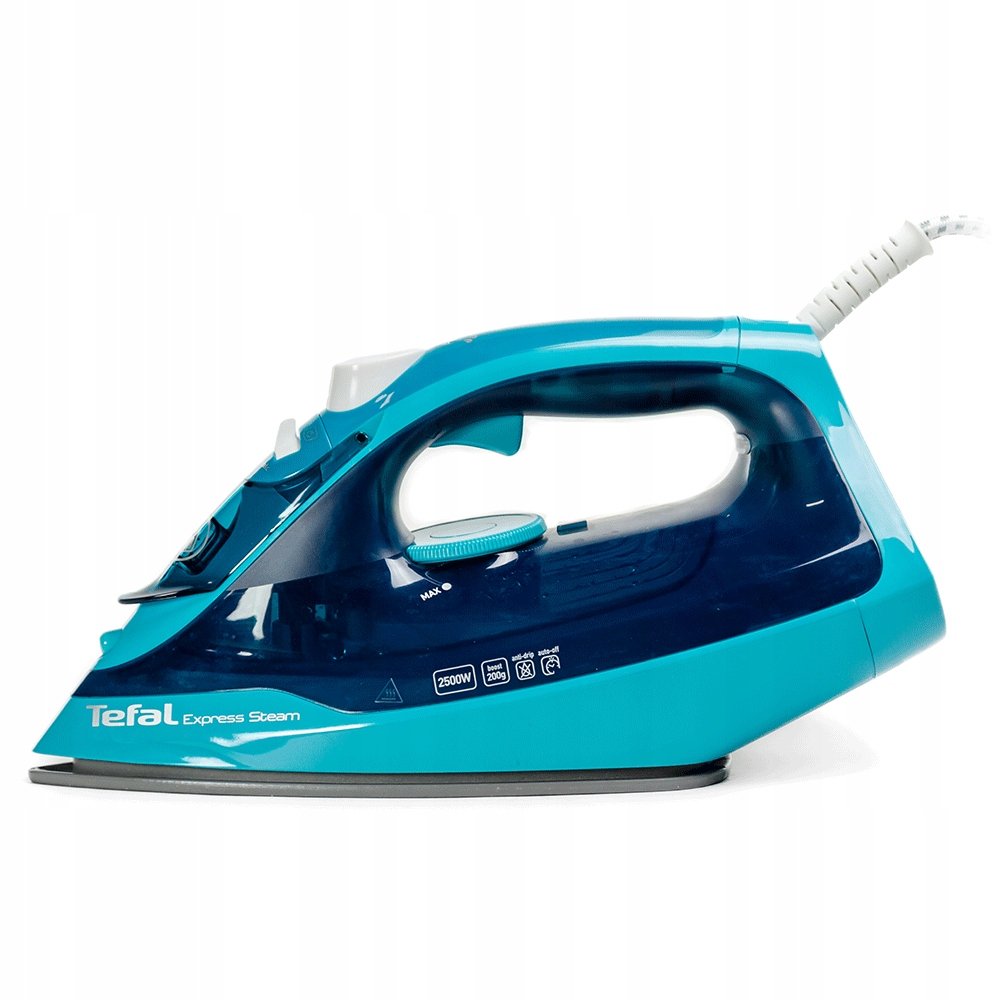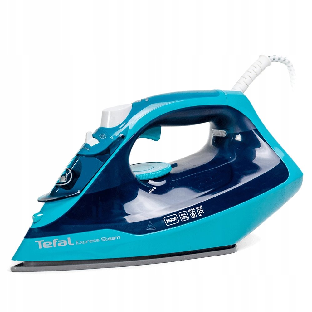 Express SteamŻelazko parowe Tefal FV2867moc: 2500 Wstopa: ceramicznaregulacja temperatury: pokrętłociągły strumień pary: 45 g/minsilne uderzenie pary: 200 g/minpojemność zbiornika na wodę: 270 ...