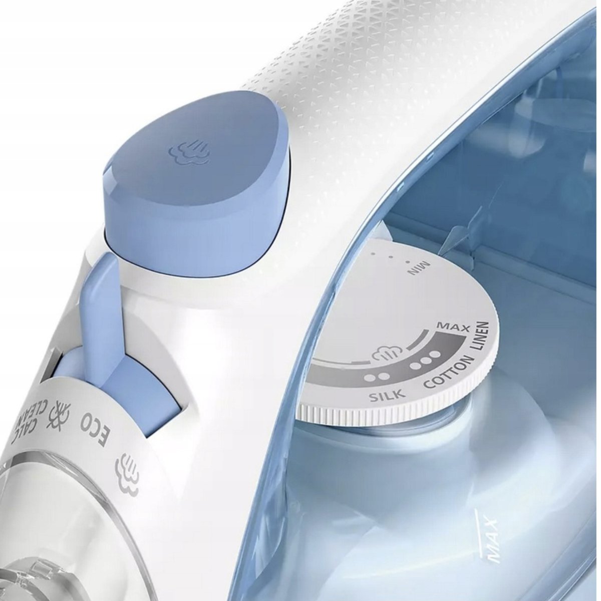 Philips DST1030, to żelazko parowe o mocy 2000 W, zapewniające doskonałe efekty prasowania. Urządzenie szybko się nagrzewa, wyposażone jest w spryskiwacz, system zapobiegający kapaniu oraz funkcję prasowania w pionie, co pozwala odświeżać zasłony lub ubrania zawieszone na wieszaku.