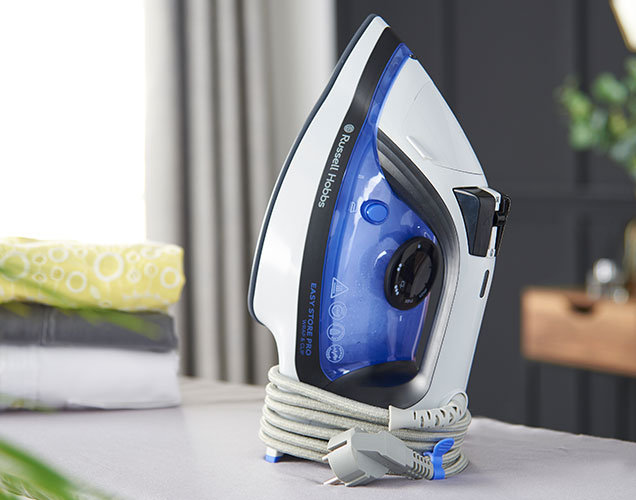 Żelazko Easy Store Pro od Russell Hobbs zostało stworzone z myślą o jego łatwym przechowywaniu. Kiedy urządzenie nie jest używane, możesz owinąć jego przewód wokół podstawy i spiąć go, co ułatwia przechowywanie żelazka. Model ten z łatwością radzi sobie również ze wszystkimi zagnieceniami - dzięki mocy 2400 W, wyrzutowi pary 180 g i stałemu strumieniowi pary 45 g.