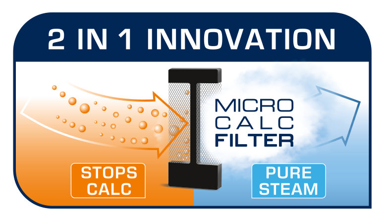Pomoże w tym innowacyjna technologia, która przed wyrzutem pary filtruje ją w 100%. Filtr zatrzyma drobinki kamienia (>0,2 mm) i jest łatwy do czyszczenia. Teraz masz pewność, że tkaniny będą gładkie i bez plam.