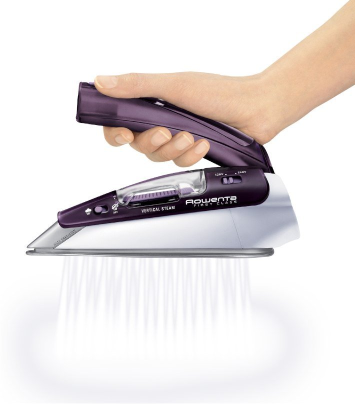 Żelazko parowe turystyczne Rowenta First Class będzie idealnym wyposażeniem podczas każdej podróży. funkcja wytwarzania pary unikalna stopa Microsteam 200 z otworami do precyzyjnego prasowania