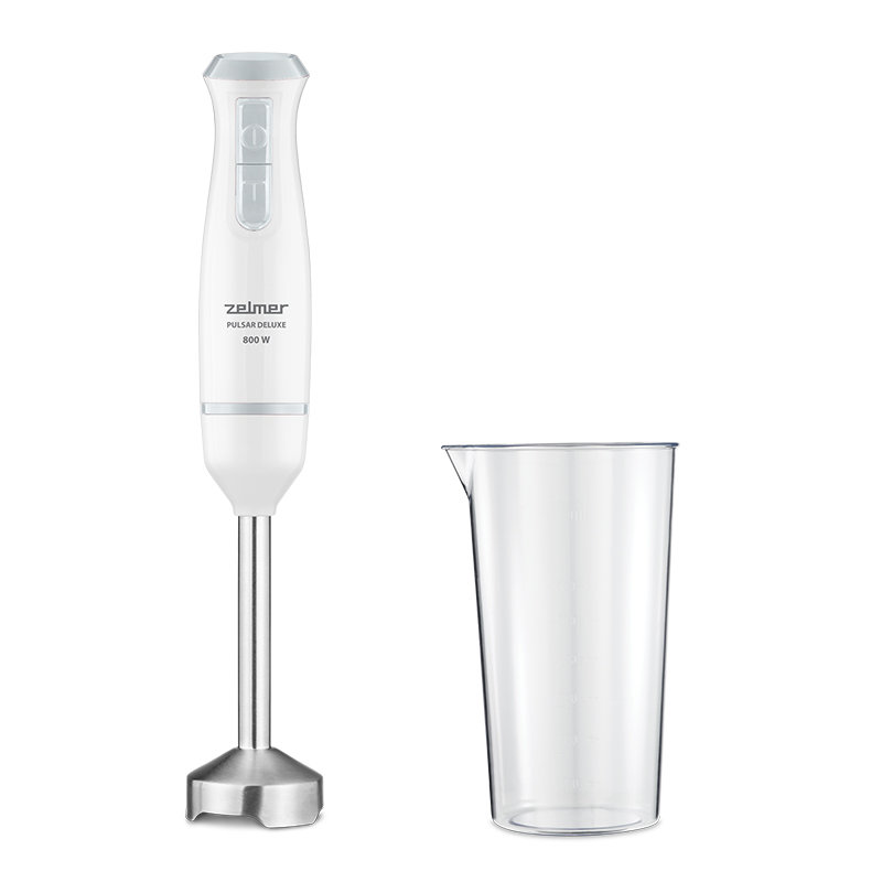 Blendery ręczne stają się coraz bardzie popularne w polskich kuchniach. Nasze urządzenie ZHB4561S Pulsar Deluxe jest wyposażony w silnik o mocy 800 W z funkcją Turbo, dwa ostrza ze stali nierdzewnej i zdejmowaną metalową stopę. W zestawie znajdziesz kubek z miarką. Ergonomiczna obudowa blendera zapewnia pewny uchwyt, dzięki któremu przygotowywanie codziennych posiłków stanie się dla Ciebie szybkie i łatwe.