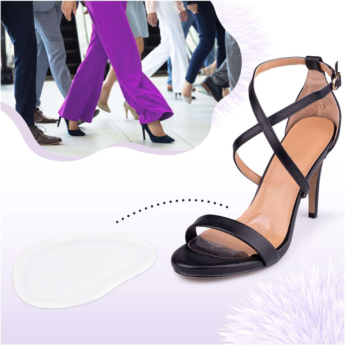Pół wkładki do butów hamują stopę i utrzymują w właściwym miejscu. Amortyzują przednią część stopy - szczególnie obciążoną w butach na obcasie. Dzięki tym wkładkom zapomnisz o bólu stóp spowodowanym długim chodzeniem w ulubionych szpilkach.