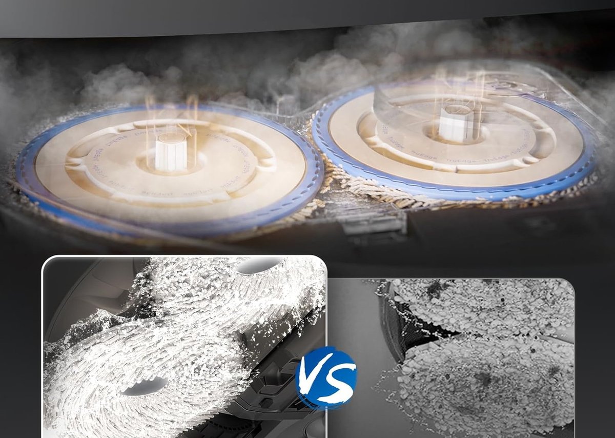 Funkcje specjalne: Automatic Dust Collection, Samoczynne uzupełnianie, Zaawansowane czyszczenie na zamówienie, Inteligentny podnośnik mopa, Hot Water Auto Mop Washing