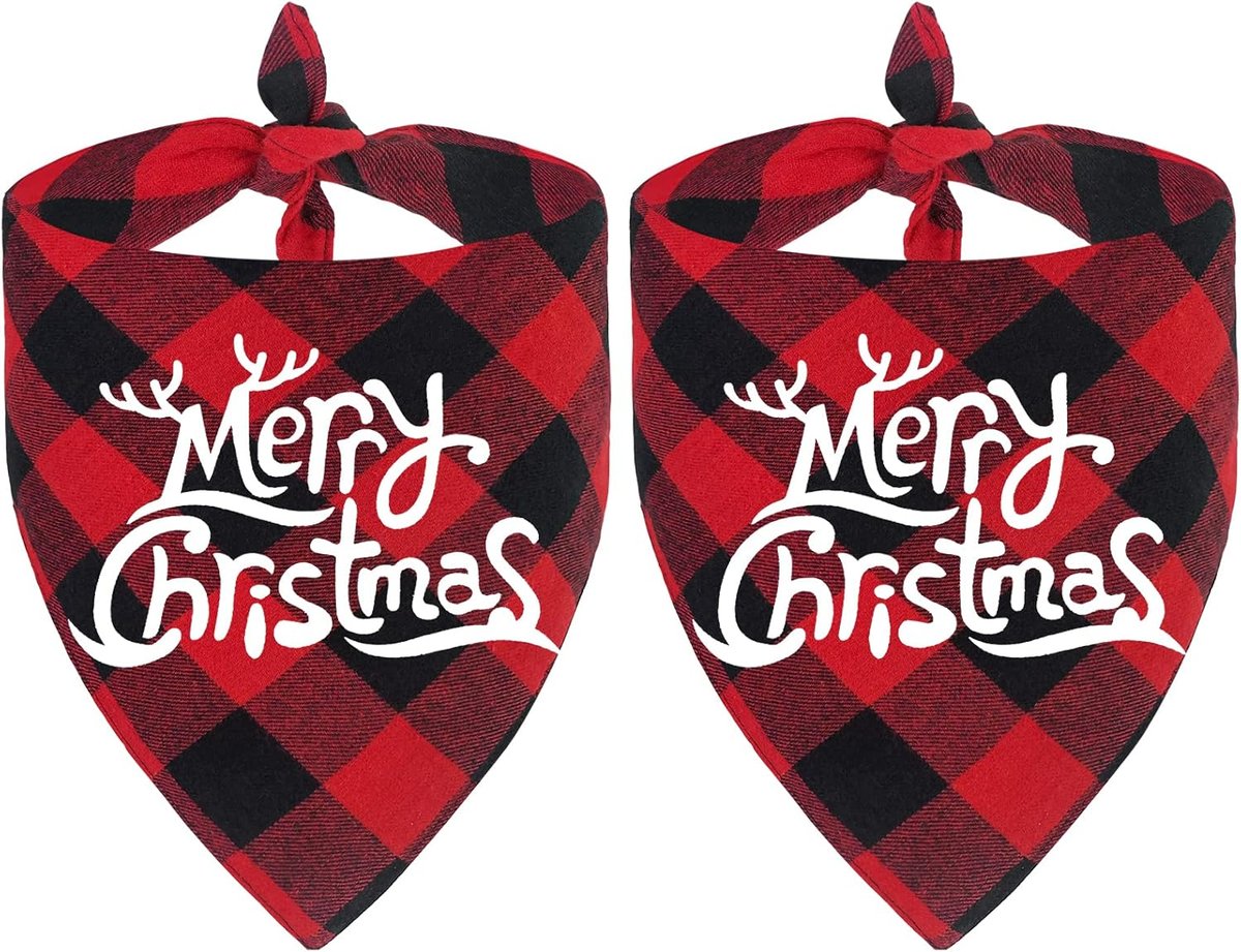 Świąteczne bandany dla psów: Klasyczne, stylowe bandany dla psów w kratę Buffalo z motywem świątecznym, idealne dla dziewczynek i chłopców. Idealnie udekoruj swojego pupila na święta Bożego Narodzenia.