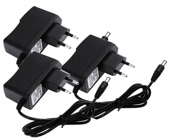 W zestawie znajdują się 5 zasilacze sieciowe 12V - dwa do kamer WiFi oraz jeden do rejestratora NVS.