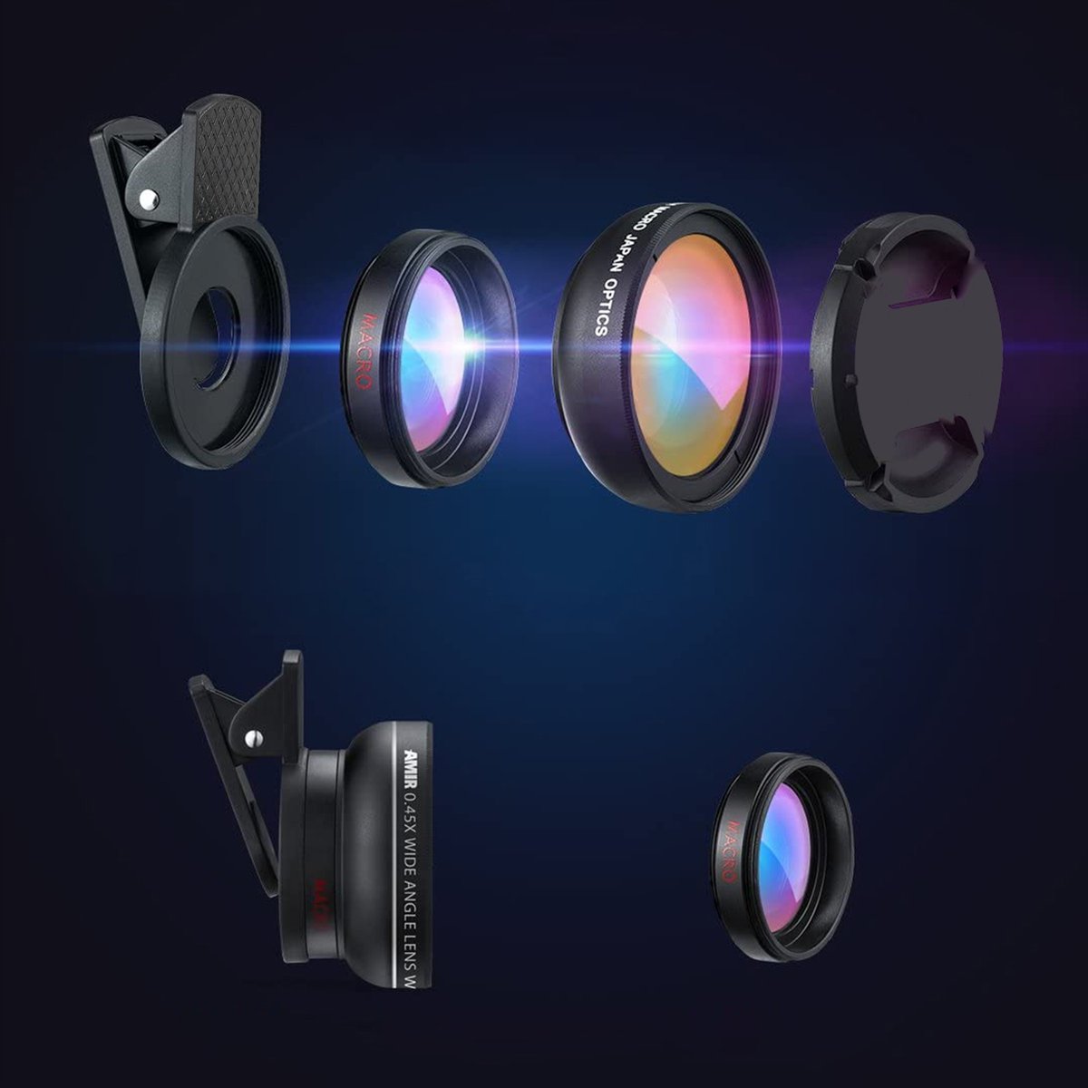✔ Obiektywy są ze sobą skręcane i w ten sam sposób mocuje się je do uchwytu, wystarczy przykręcić soczewki a następnie zamocować klips na telefonie w odpowiednim miejscu - nie ważne czy chcesz korzystać z przedniego aparatu czy tylnego!