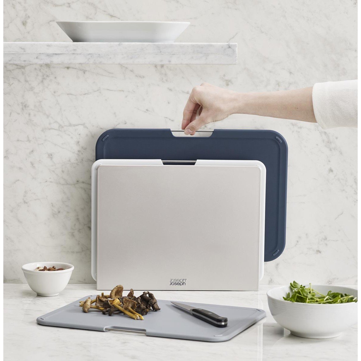 Deski do krojenia Nest marki Joseph Joseph zostały stworzone specjalnie dla osób, które nie posiadają dużej kuchni i lubią funkcjonalne przedmioty. Deski umieszczone są na stojaku, dlatego po ...