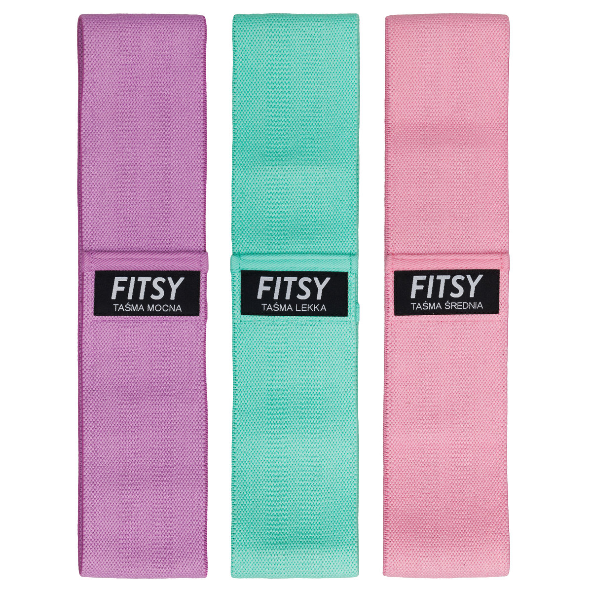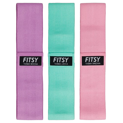 Materiałowe gumy do ćwiczeń FITSY to wszechstronny sprzęt fitness, idealny do wzmacniania, aktywacji mięśni oraz treningów mobilności.