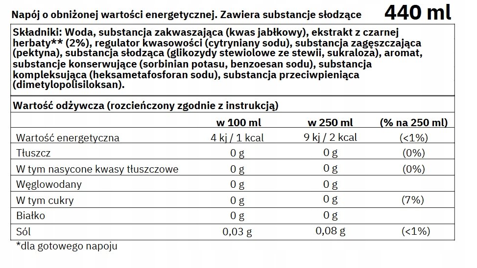 Każda butelka 440 ml wystarcza na przygotowanie aż 9 litrów napoju – idealnego do relaksu w upalne dni, na spotkania z przyjaciółmi czy chwile tylko dla Ciebie.