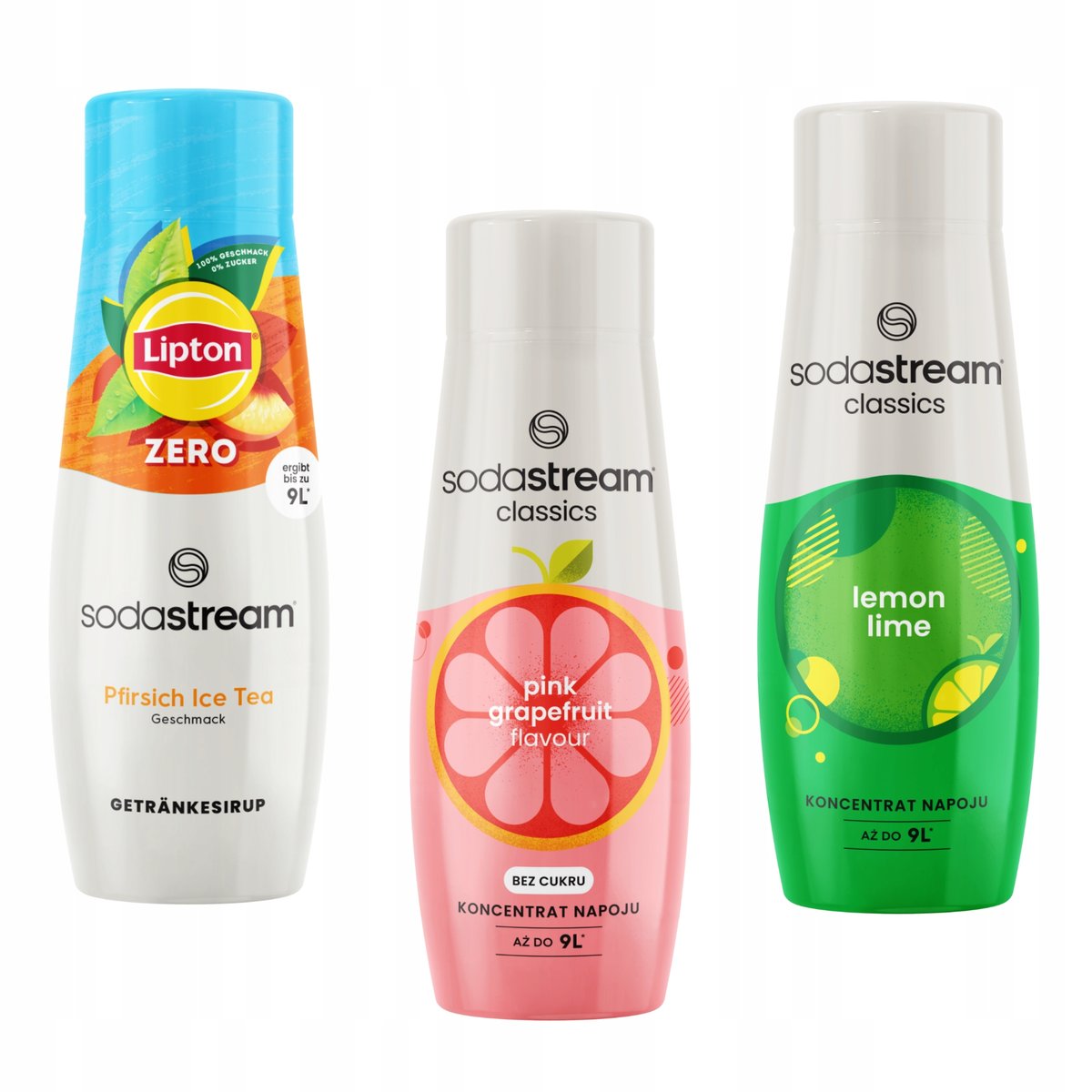 Zestaw 3 koncentratów Sodastream. Ice Tea Peach Zero, Grapefruit, LemonLime