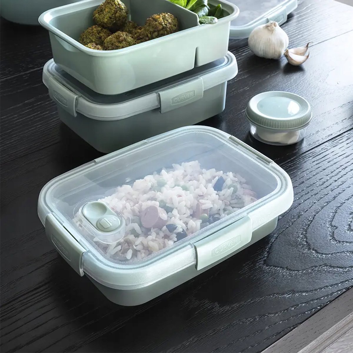 Łatwość Przechowywania: Pojemniki są lekkie i kompaktowe, dzięki czemu łatwo je przechowywać, zarówno w kuchni, jak i w torbie do pracy lub na wycieczkę.