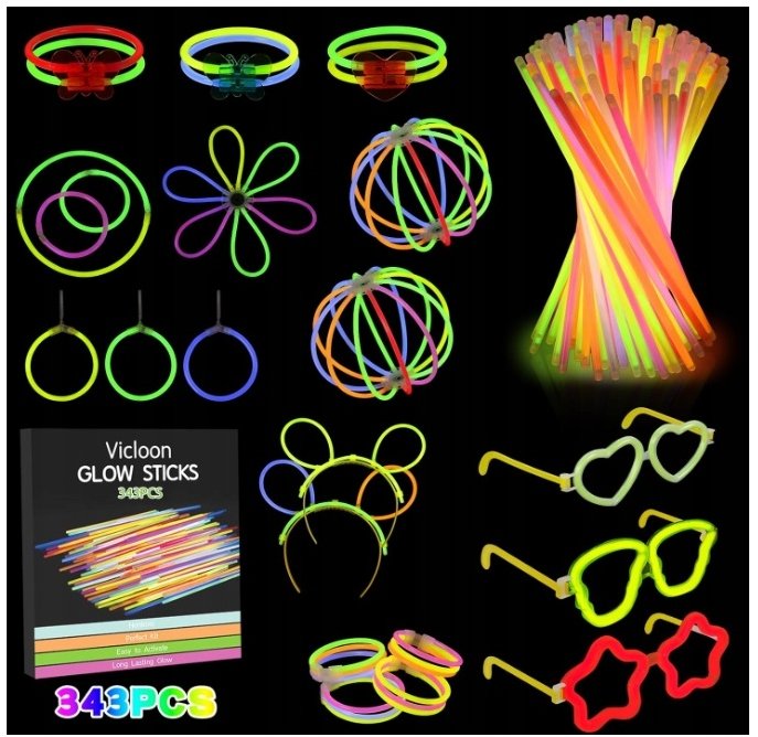 To pudełko świecących pałeczek ma ponad 343 elementy, w tym: