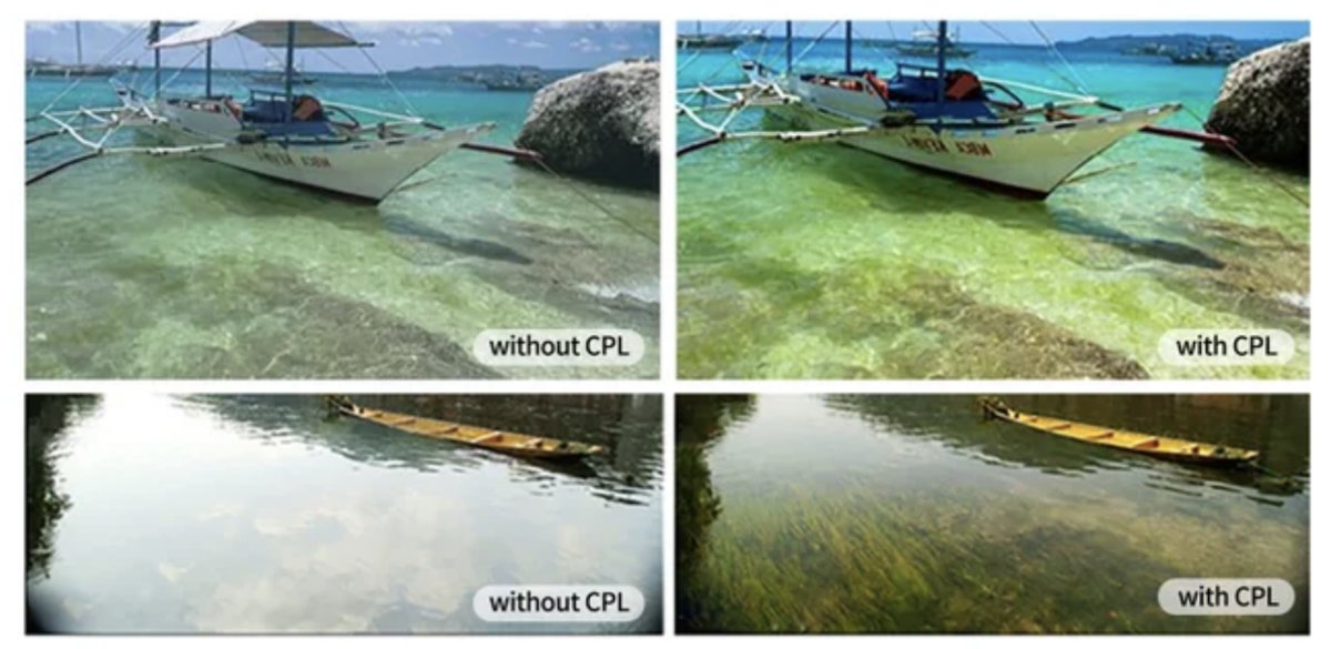Filtr CPL umożliwia również znaczną poprawę nasycenia barw powierzchni nieprzezroczystych (np. zieleni roślin) oraz redukcję odbić od powierzchni przezroczystych (np. tafli wody lub szyby).