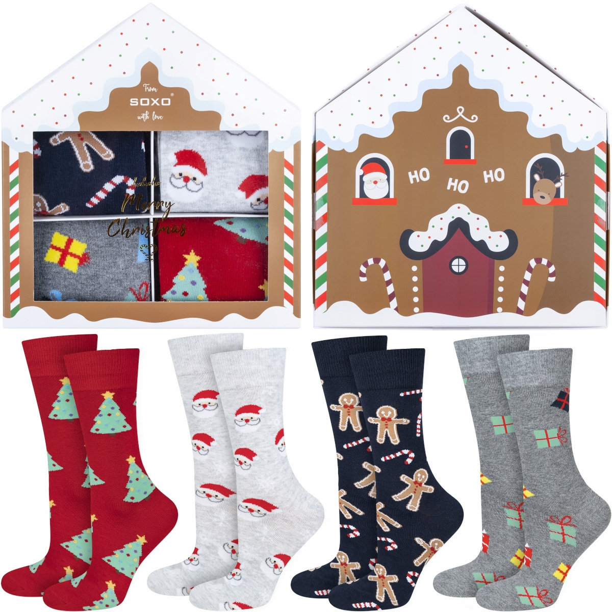 Zestaw zawiera: 1x skarpetki piernikowe ciastko 1x skarpetki mikołaje 1x skarpetki drzewko bożonarodzeniowe 1x skarpetki świąteczne prezenty Modne skarpetki SOXO z pewnością ucieszą wszystkich ...