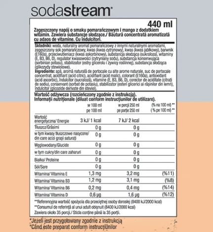 *Poziom intensywności smaku napoju możemy dostosować wg. indywidualnych preferencji dolewając mniejszą, bądź większą ilość koncentratu do butelki.