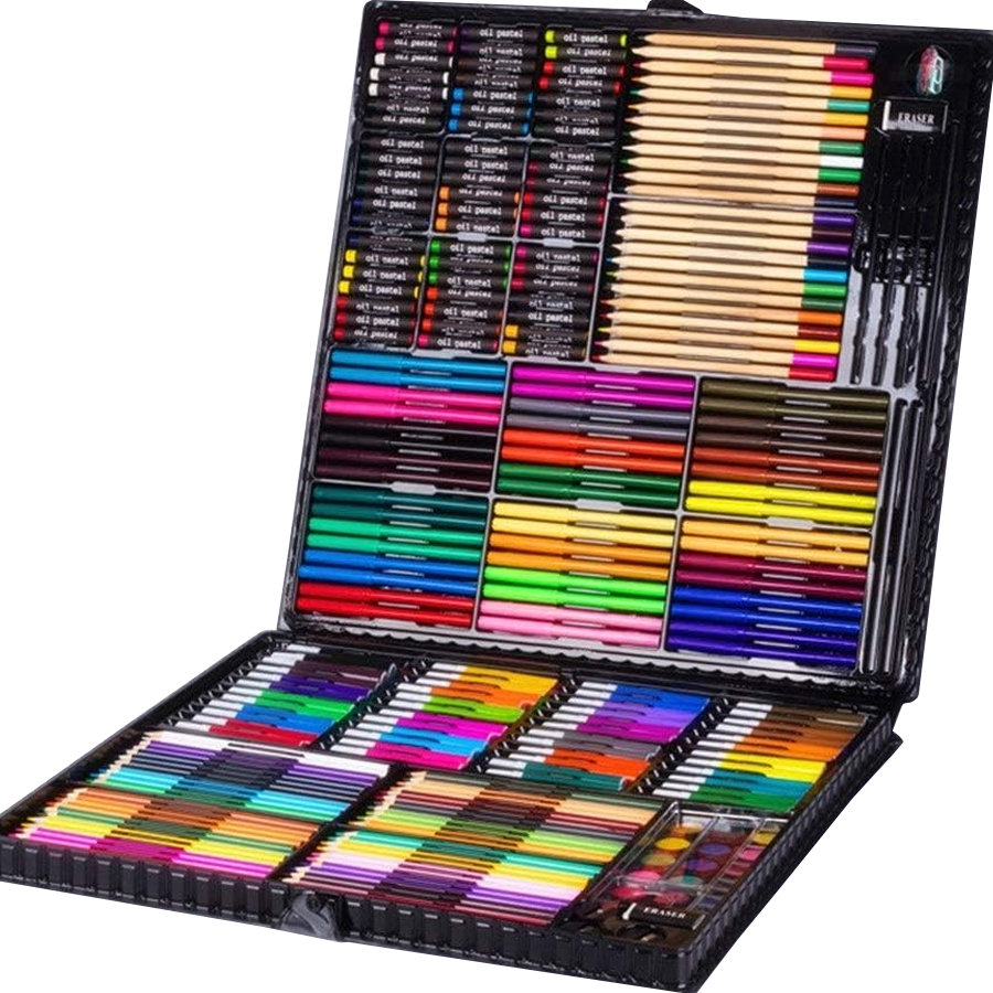 Zestaw artystyczny do malowania i rysowania 298 elementów + Walizka Zestaw zawiera: 60 Pasteli olejnych 72 Kredki ołówkowe 96 Flamastrów 18 Farb akwarelowych 40 Spinaczy 3 Pędzelki 3 ...