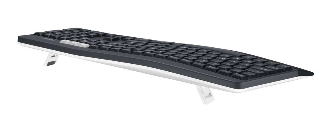 Dzięki regulowanym nóżkom możesz ustawić klawiaturę pod jednym z trzech kątów, dopasowując ją do swoich preferencji. Wygięta obudowa i miękka podpórka pod nadgarstki wspierają dłonie i redukują zmęczenie, zapewniając komfort nawet podczas długich godzin pracy.
