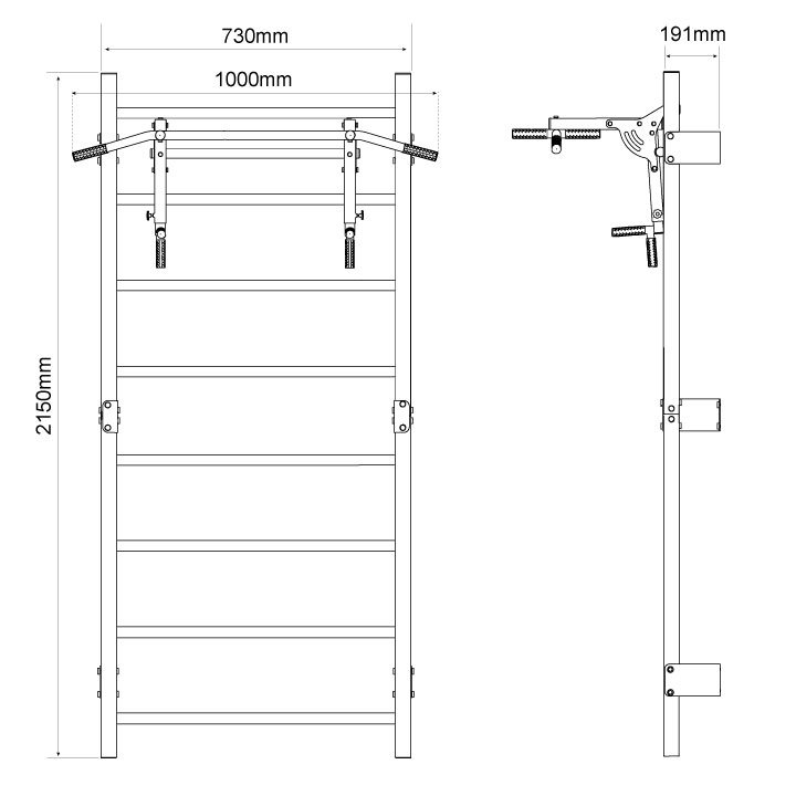 W trakcie treningu z łatwością zmienisz urządzenie z drążka na poręcze. Wystarczy zaczepić specjalne uchwyty o wybrany szczebel drabinki.