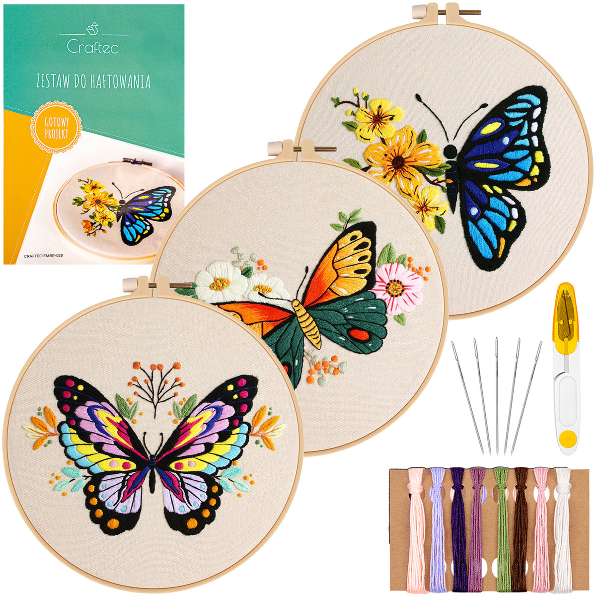 Zestaw do haftowania z 3 gotowymi wzorami Gotowy zestaw do haftowania Craftec z instrukcją. Idealny do rozpoczęcia przygody z dziewiarstwem. Stwórz piękne obrazy i zrelaksuj się jednocześnie. W ...