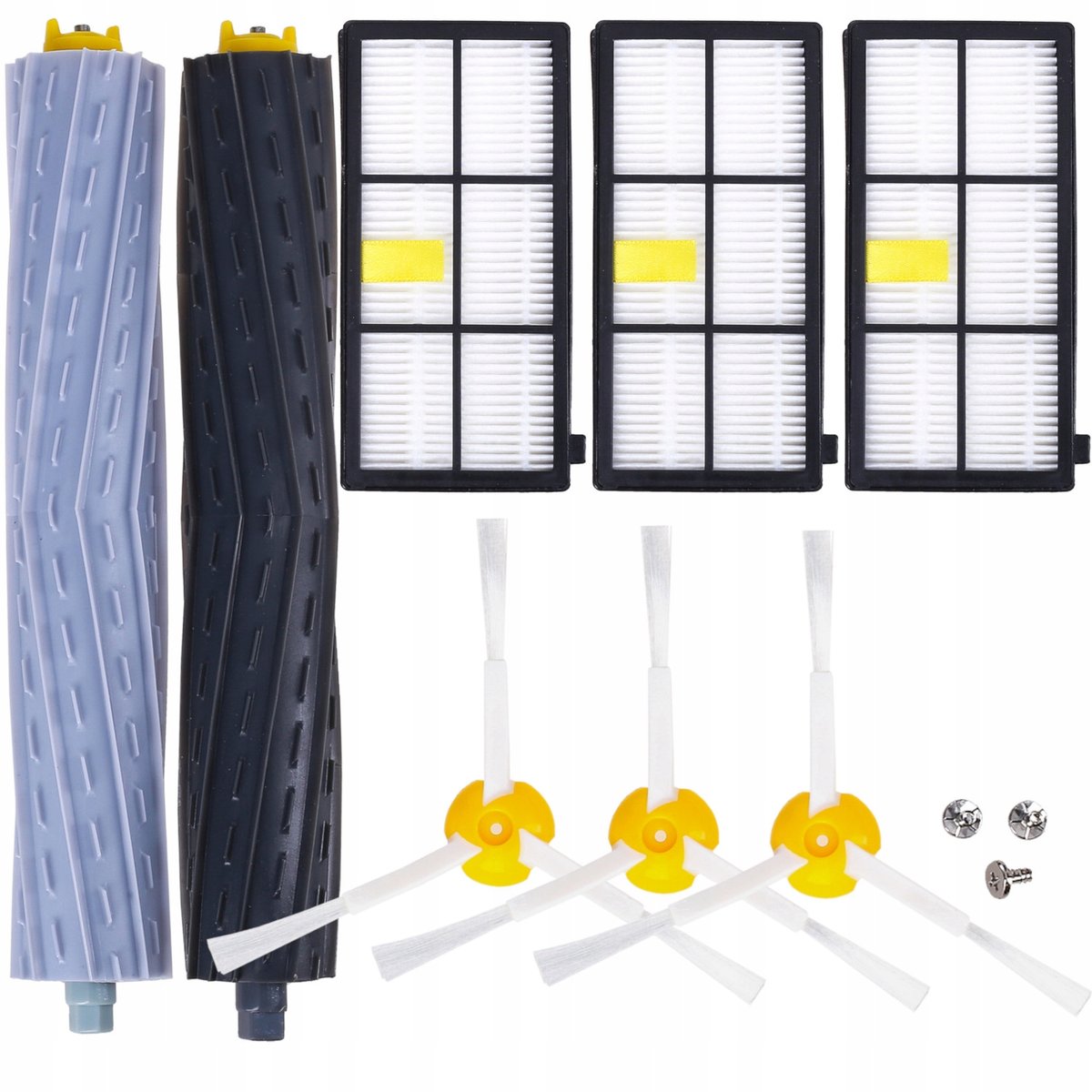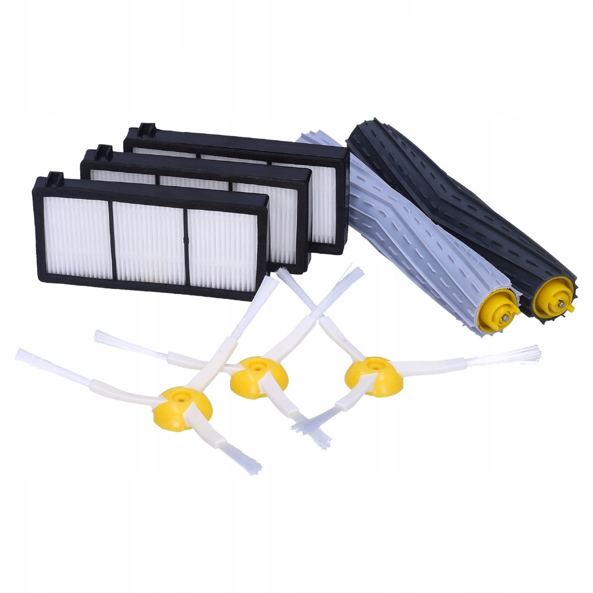 Zestaw do iRobot Roomba szczotki filtr 800 900 980 Kolor: Wielokolorowy Rodzaj: Zamiennik Opakowanie: Foliowe Jednostka: Komplet Ilość sztuk: 8 (2x rolka gumowa, 3x filtr ...