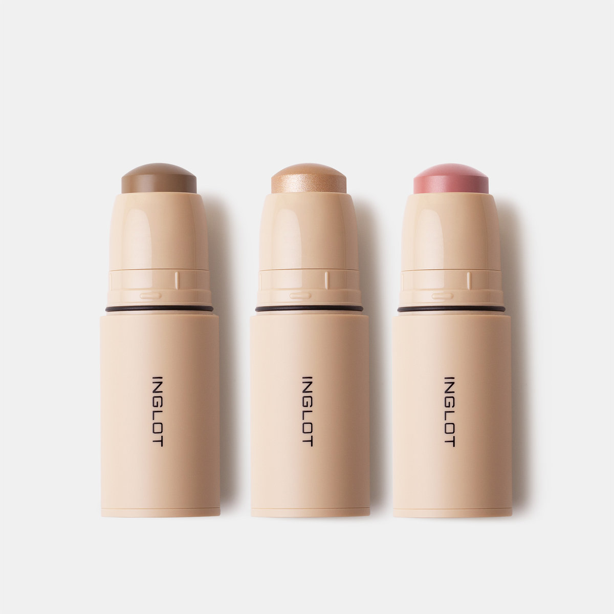 Kremowy bronzer w sztyfcie INGLOT Medium Brown 111 Kremowy róż w sztyfcie INGLOT Classic Pink 212 Kremowy rozświetlacz w sztyfcie INGLOT Classic Glow 311