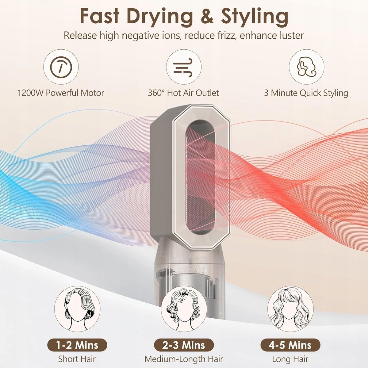 ● Szybkoschnące: Dzięki zastosowaniu zaawansowanej powłoki ceramicznej i wysoce wydajnej technologii szczotek maszynowych uzyskuje się szybkie nagrzewanie i równomierne odprowadzanie ciepła, wspomagając jednocześnie szybkie chłodzenie, aby chronić włosy przed uszkodzeniami spowodowanymi wysoką temperaturą.
