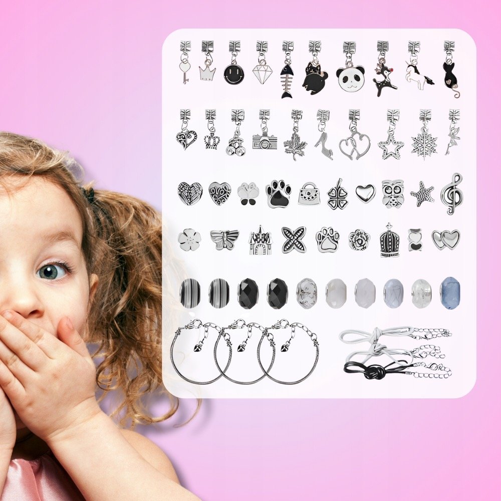 ZESTAW DO ROBIENIA BRANSOLETEK NASZYJNIKÓW CHARMS SZKATUŁKA KORALIKI DZIECI DUŻY ZESTAW DO ROBIENIA BRANSOLETEK I NASZYJNIKÓW CHARMS➕ TORBA PREZENTOWA➕ SZKATUŁKA➕ ZAWIESZKI, ...