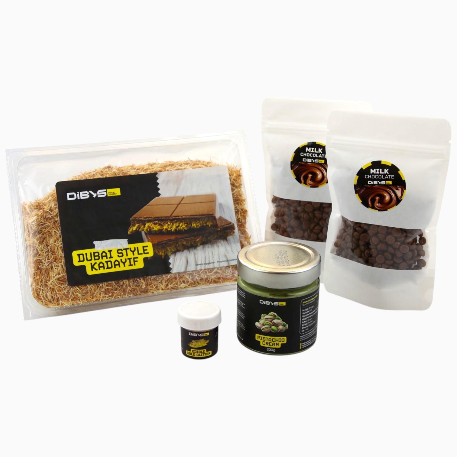 Złoto, pistacje, aksamitna czekolada – wszystko błyszczy, pachnie i smakuje jak z najdroższej cukierni przy Burj Khalifa. Ale nie musisz lecieć prywatnym odrzutowcem – z zestawem od DIBYS robisz to w swojej kuchni.