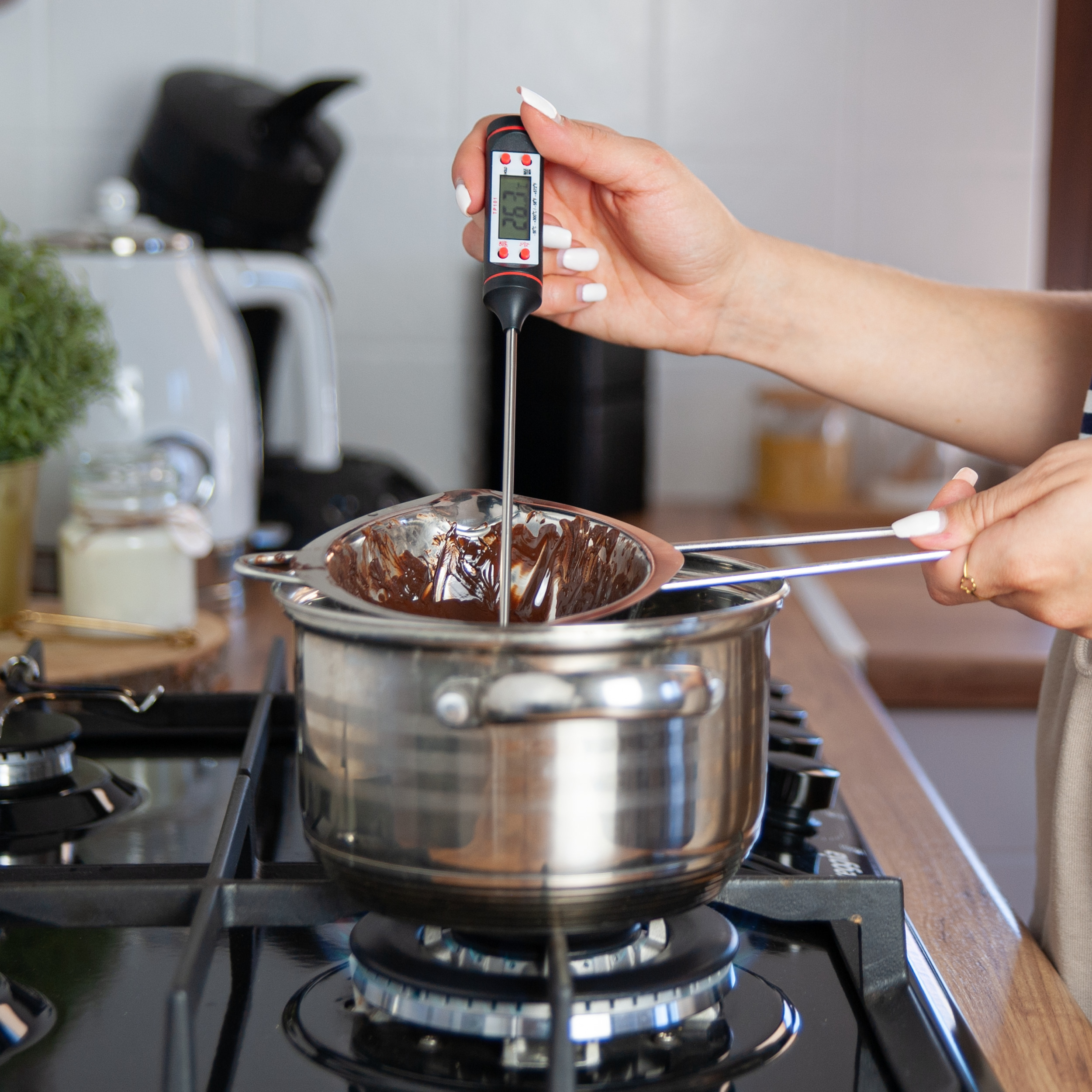 Termometr szpilkowy – niezawodne wsparcie podczas procesu temperowania, aby czekolada miała idealną konsystencję i połysk.