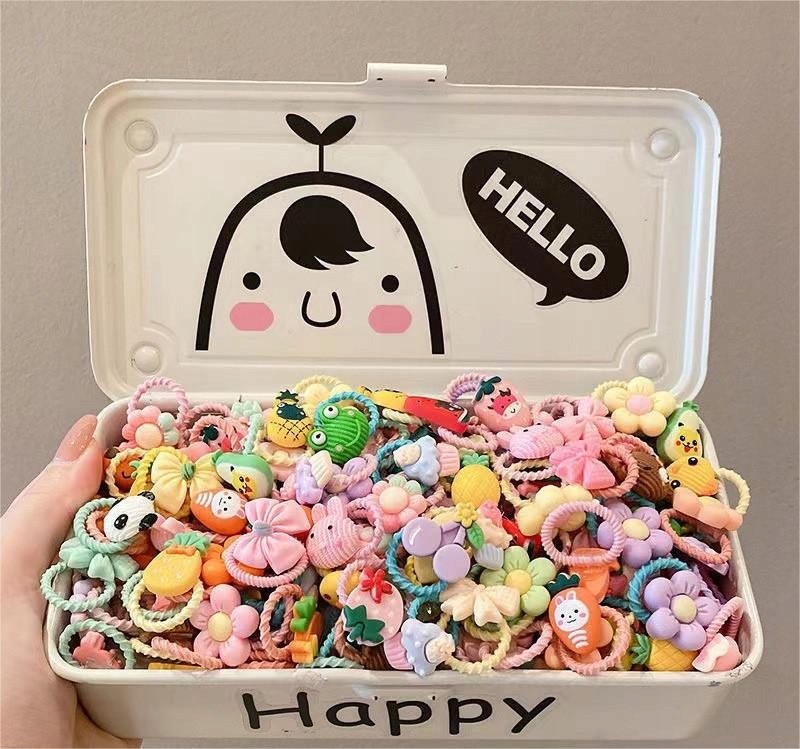 Zestaw 200 Kolorowych Gumek do Włosów dla Dzieci z Uroczymi Motywami + Opakowanie