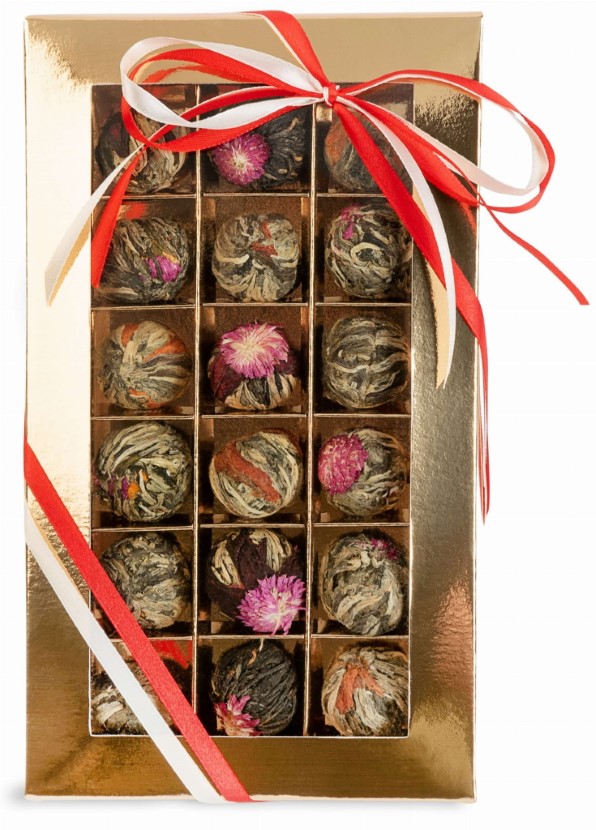 Zestaw herbat kwitnących 18 sztuk w ozdobnym pudełku, herbata kwitnąca na prezent
