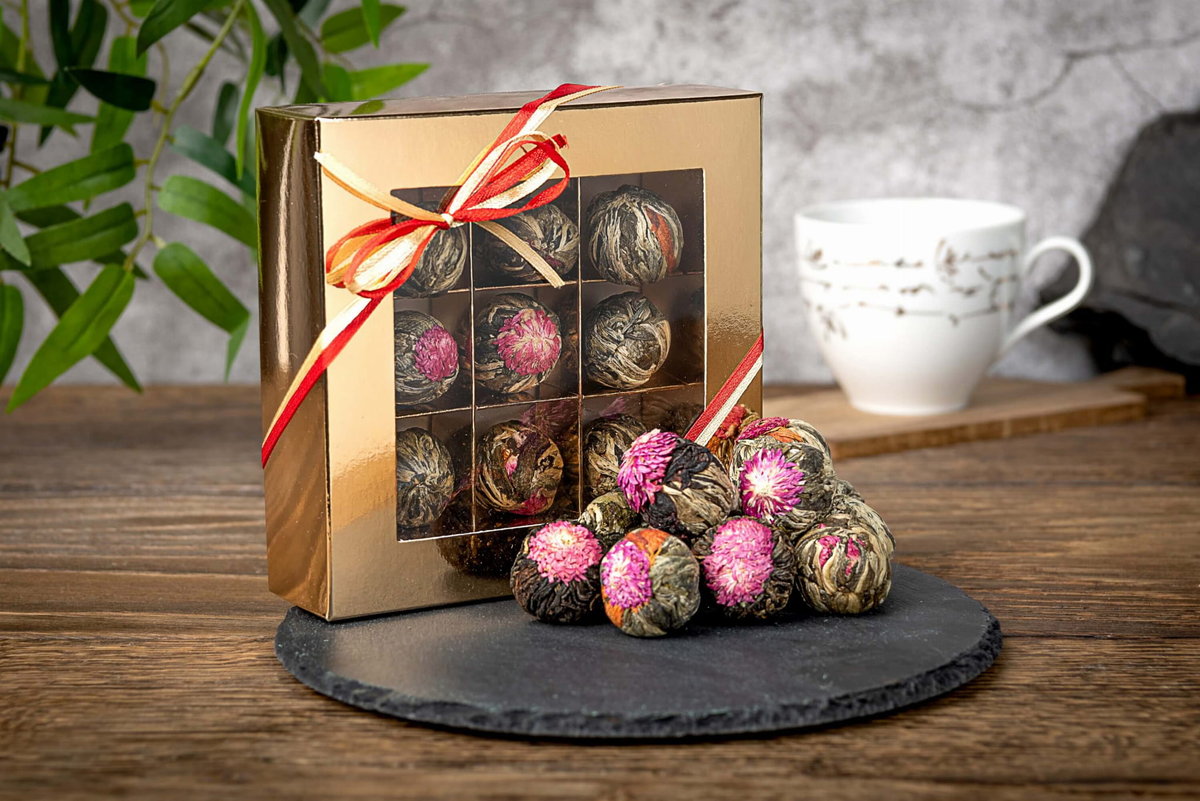 Zestaw herbat kwitnących 9 sztuk w ozdobnym pudełku, herbata kwitnąca na prezent