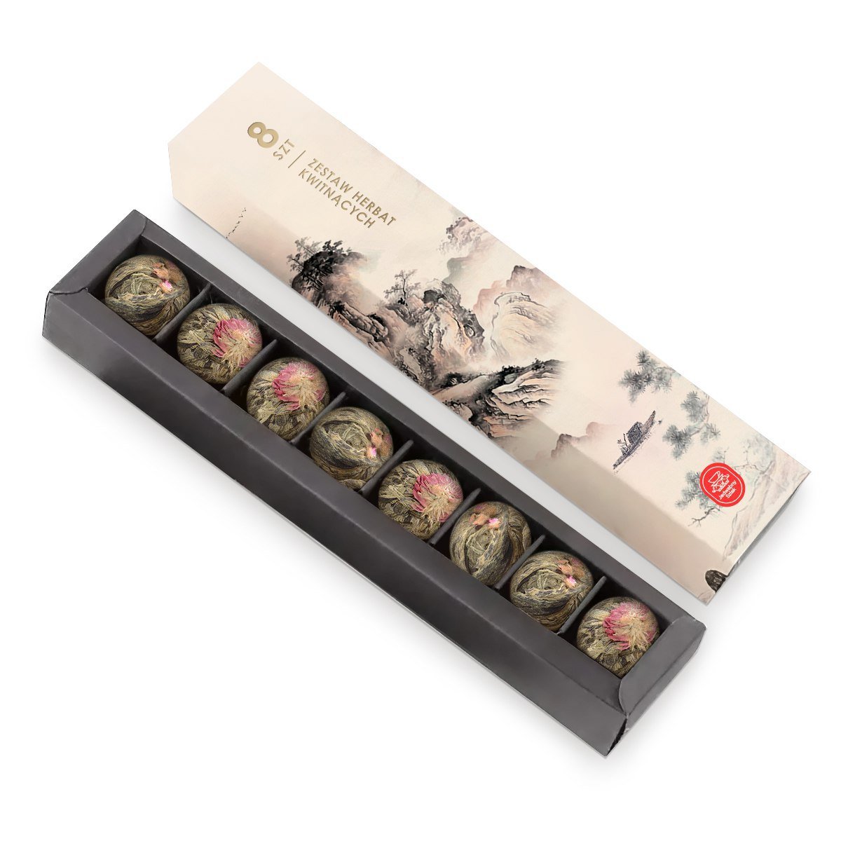 Odkryj magię rozkwitających herbat w wyjątkowym zestawie, który przeniesie Cię w świat subtelnych smaków i aromatów. Nasz zestaw zawiera 8 starannie wyselekcjonowanych kulek herbaty białej, każda o unikalnym profilu smakowym. Każda kulka to małe dzieło sztuki, które po zalaniu gorącą wodą rozkwita, ukazując piękne kwiaty, tworząc nie tylko wspaniały napar, ale także niezapomniane wrażenia wizualne.