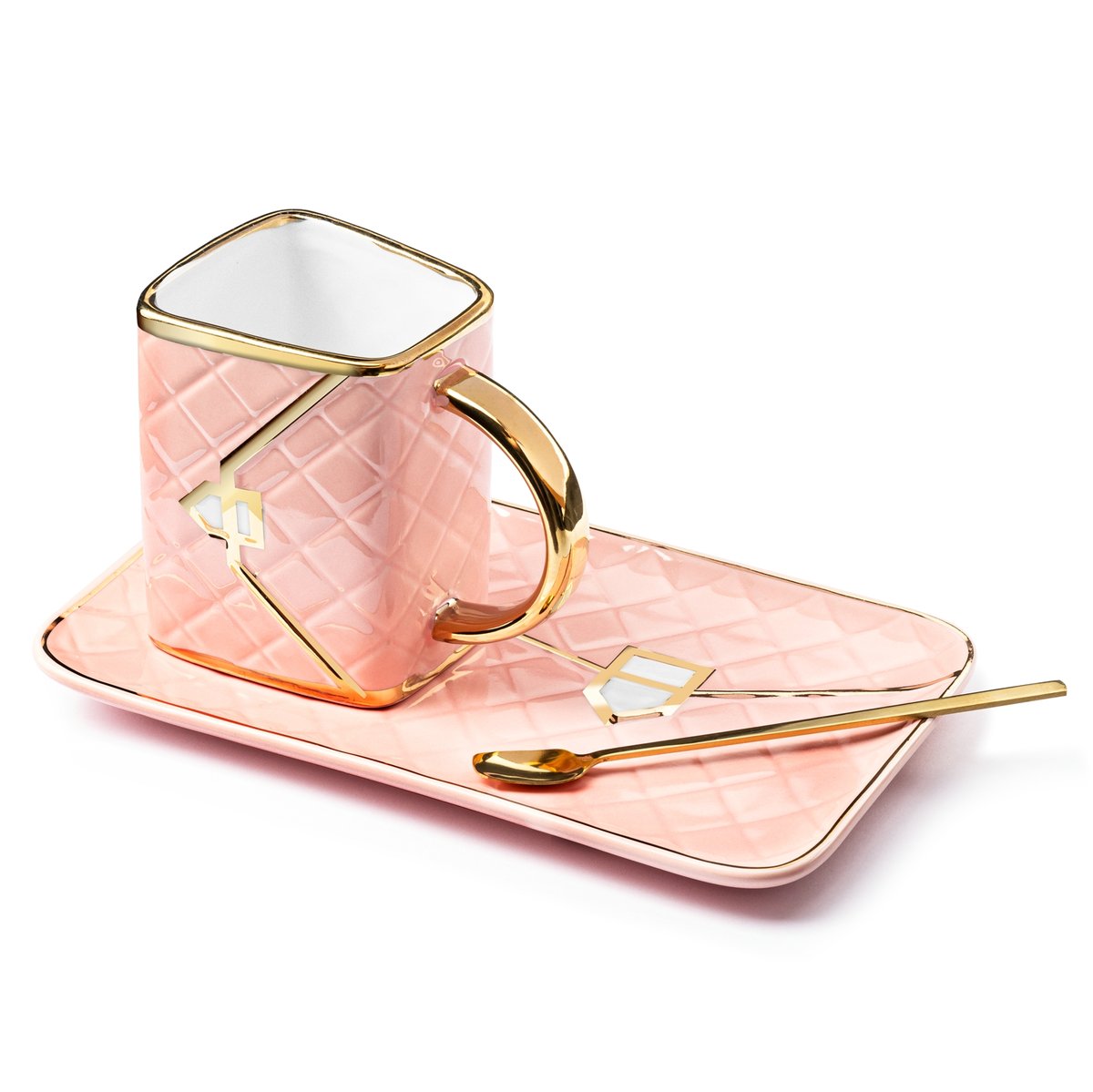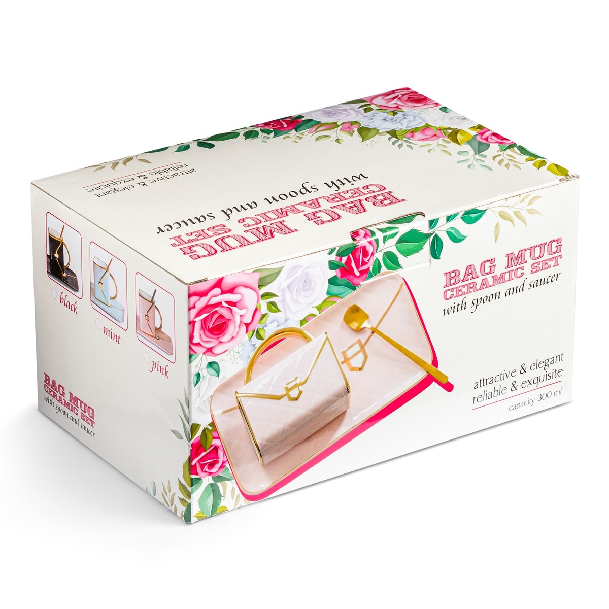 Szukasz wyjątkowego prezentu dla wyjątkowej kobiety? Nasz elegancki kubek z podstawką i złotą łyżeczką to świetna propozycja na taki niebanalny upominek. W naszym zestawie znajdują się właściwie aż dwie torebki! Kubek jest zgrabnym i eleganckim kuferkiem, podstawka zaś to stylowa torebka kopertówka.