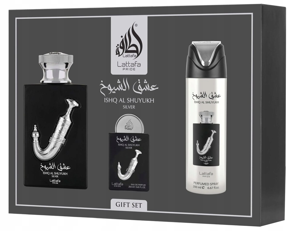 | Nazwa: | Zestaw Lattafa Ishq Al Shuyukh Silver Edp 100ml + Edp 20ml + Deodorant 200ml |